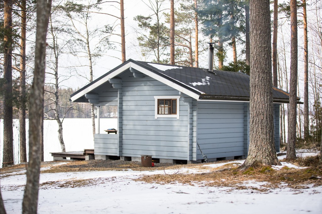 Sauna: Erillinen saunarakennus, puulämmitteinen kiuas, kantovesi järvestä tai ulkohanasta